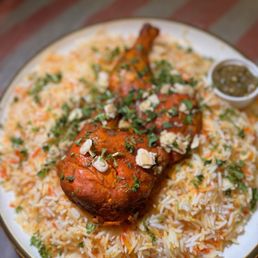 I visited this place several months ago and am just now getting around to writing a review. I tried the House Salad and Chicken Mandi. The chicken, while visually appealing, lacked the flavor I expected, making it rather unmemorable. As a previous reviewer mentioned, it tasted similar to supermarket chicken, and I agree. The rice, on the other hand, was the highlight of the dish, with a delightful mix of herbs, raisins, and nuts. The portion size for the chicken meal was extremely generous, allowing me to take half of it home for the next day. I added some much-needed seasoning to the chicken at home. The House Salad was nothing special but was necessary to have some vegetables with my main meal.